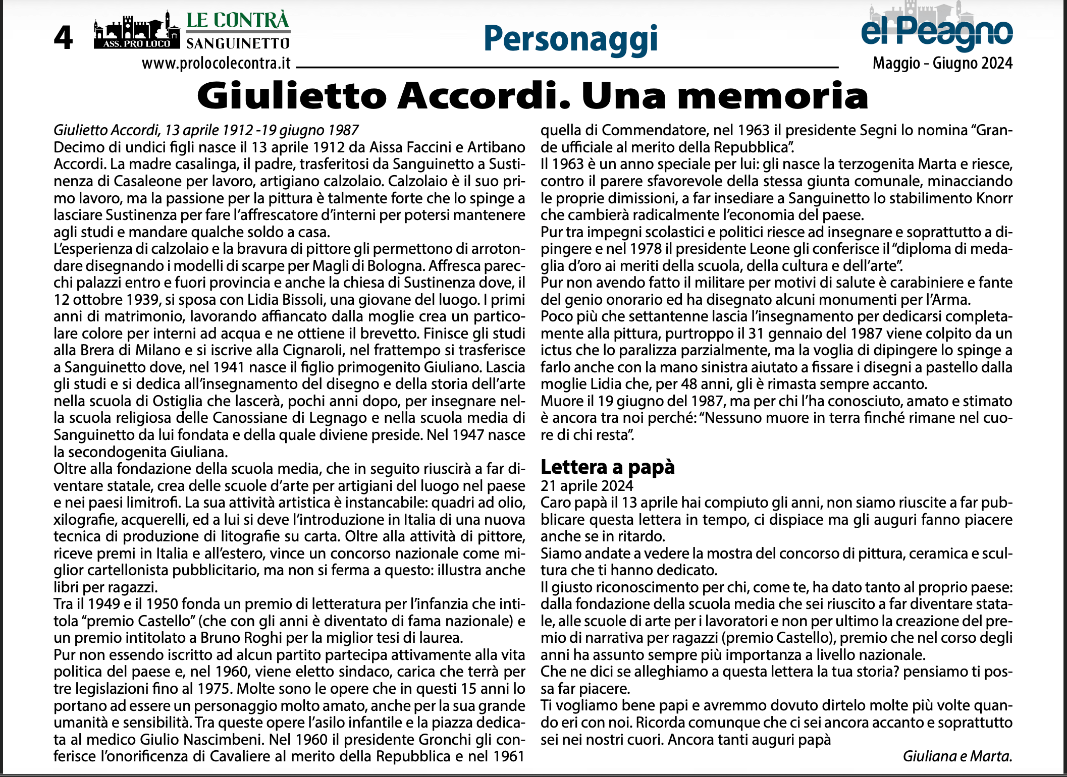Giulietto Accordi. Una memoria Giulietto Accordi, 13 aprile 1912 -19 giugno 1987 Decimo di undici figli nasce il 13 aprile 1912 da Aissa Faccini Leggi tutto